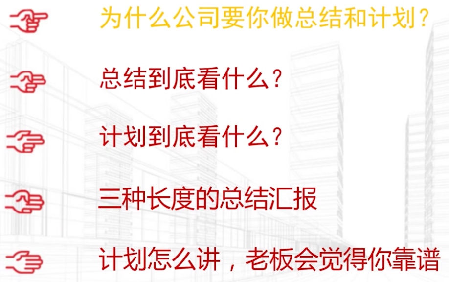 为什么? 总结看什么? 计划看什么? 三种长度的总结汇报模板 一句话版本,适合口头汇报 三分钟版本 十五分钟版本 计划怎样讲,老板会觉得你靠谱? 总结 https://www.youtube.com/watch?v=-S8JFpjbT1Y Previous 年终总结,究竟在写什么? Next 自我介绍的表达技巧和素材 FEATURED TAGS 测试 管理 江山老师 软考高项 杂谈 年终总结 建站 自我介绍 规划 解决问题 Go FRIENDS 插座学院 Sherry Wu Luke 的自留地 Ebn's Blog SmdCn's Blog JiyinYiyong David's Game DHong Say 尹峰以为 蕨根 郭姐