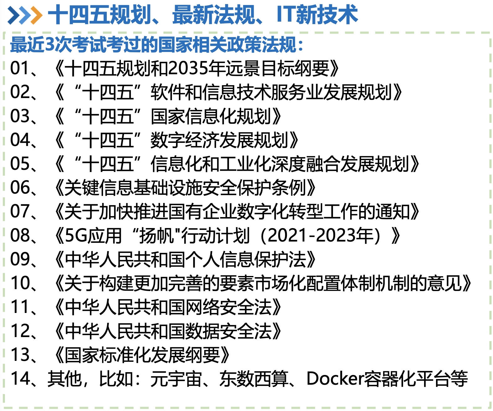 【软考高项-江山老师】07-十四五规划、最新法规、IT新技术 Previous 软考高项-06 Next 软考高项-08 FEATURED TAGS 测试 管理 江山老师 软考高项 杂谈 年终总结 建站 自我介绍 规划 解决问题 Go FRIENDS 插座学院 Sherry Wu Luke 的自留地 Ebn's Blog SmdCn's Blog JiyinYiyong David's Game DHong Say 尹峰以为 蕨根 郭姐